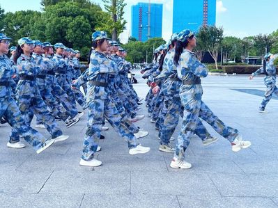 “稍息!”“立正!”“跨立!”“正步走”……每一项考核都需要我们全力以赴,站军姿时,身躯笔直,目光坚定,任凭汗水湿透衣衫,也要保持纹丝不动。