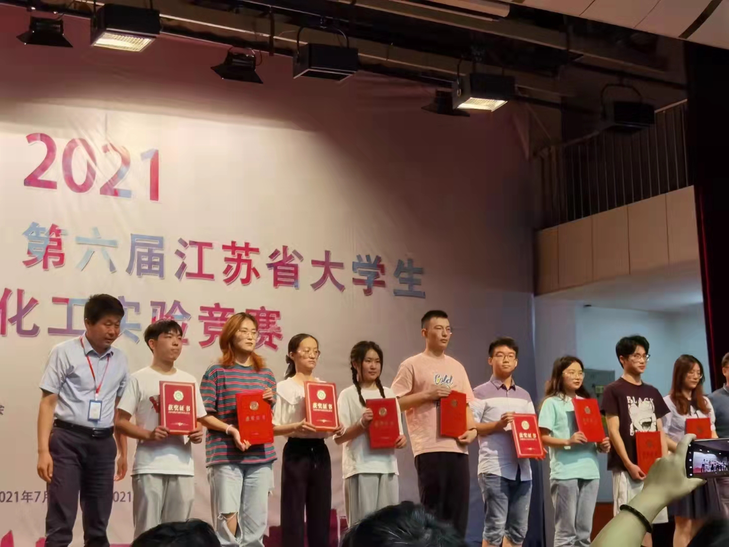 2021年7月17至19日,由江苏省大学生化学化工实验竞赛组织委员会、江苏省化学化工学会、江苏省高校实验室研究委员会、江苏省高等学校实验教学示范中心联席会主办、江南大学承办的2021年“欧倍尔杯”第六届江苏省大学生化学化工实验竞赛成功举行。我校材料与化学化工学部派出了由赵蓓、夏雪伟和陆澄容老师带领的6位学生,分别参加化学组和化工组的比赛。经过多日的备赛和比赛,最终获得了化学组特等奖、一等奖、三等奖各1名和化工组两个三等奖的佳绩。