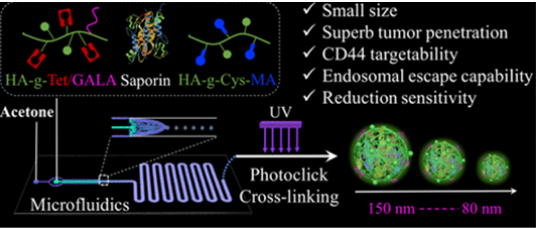 Small, Traceable, Endosome-Disrupting, and Bioresponsive Click Nanogels Fabricated via Microfluidics for CD44-Targeted Cytoplasmic Delivery of Therapeutic Proteins