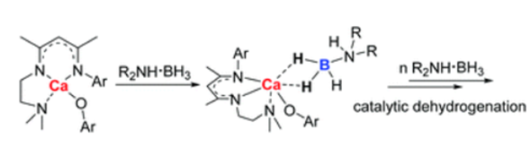 Stoichiometric reactions and catalytic dehydrogenations of amine–boranes with calcium aryloxide
