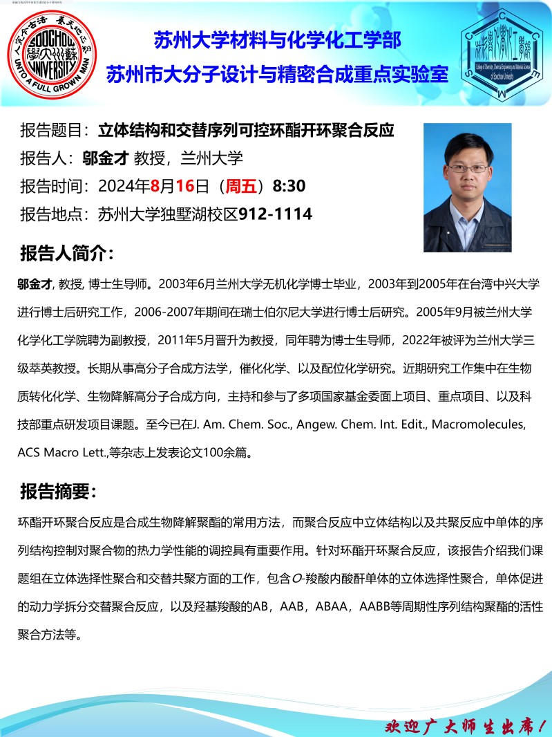 立体结构和交替序列可控环酯开环聚合反应
