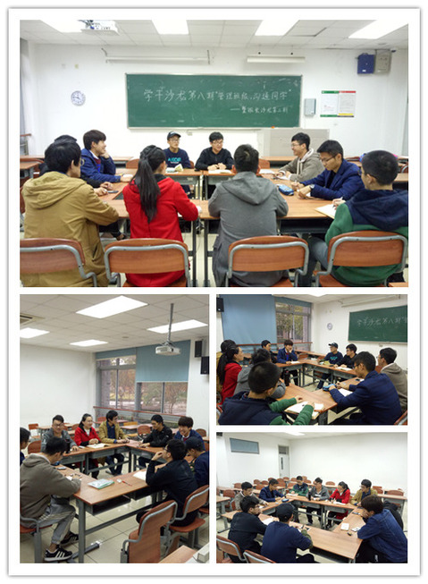 活动伊始,2016级班长与2017级班长就近期活动进行交流,指出活动中遇到的问题。2016级材料科学与工程班班长隋铖奇以相声小品大赛为引子,表明文娱委员开展工作有困难,难以调动广大同学的积极性。其余班长纷纷讲述本班同学对这一比赛的看法。通过集体交流,各班长针对时间紧凑、演员缺少等问题,提出了在相声小品大赛中,各班级可以共同准备节目的想法。接着,各班长又互相了解早晚自习情况,表示会时刻关注下一阶段的学习状况。随后,2017级班长共同向2016级班长请教如何管理班中特殊学生的问题。2016级化学班班长有少文向大家分享了自己的亲身经验。他建议2017级班长在面对难以沟通的同学时,应该避免冲动的言行,尽量让辅导员出面调解。紧接着,其他班长做出补充,指出在与班上同学沟通时,班委应与班长站在同一战线上。他们认为管理班级,首先要管理班委。通过分析一些事例,各班长一致认为团结的班干关系是班级发展的重要保证。在活动的最后,2016级材料化学班班长邵蕊以过来人的身份,衷心的希望各2017级班长重视学习,能够很好的协调组织与学习之间的关系。其余的2016级班长也纷纷强调了学习的重要性,并分享了很多学习技巧。至此,第八期学干沙龙暨第二期班长沙龙圆满结束。