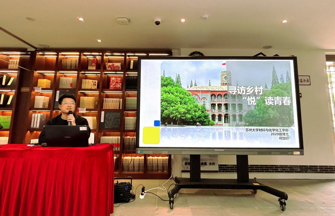 在读书分享环节,优秀毕业生党员代表何加钦党员同志,向同学们推荐了他的阅读书单,重点讲述了他在苏大十年间学习、支教、科研经历,为各位同学提供学习和生活的指导。