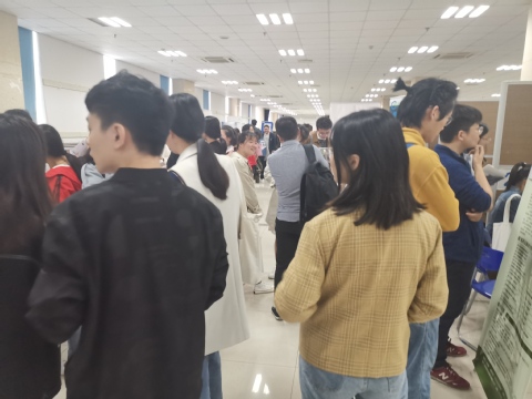 随着数百名毕业生陆续到达现场,招聘会活动正式开始。由于本次招聘会应邀而来的公司较多,所以同学们都直接到心仪公司的招聘摊位应聘。他们认真地向招聘人员了解公司的发展方向、员工福利、职位要求和人才培养计划等问题,各公司招聘人员也都细心地为同学们讲解,并解答疑虑。