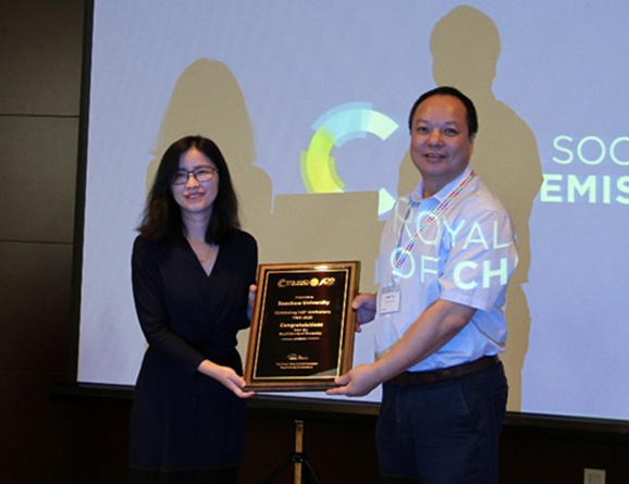 英国皇家化学会副首席执行官Paul Lewis先生发来视频贺词。英国皇家化学会中国和东亚区总经理陈会丽女士出席论坛,并表达了对苏州大学120周年校庆的诚挚祝福。