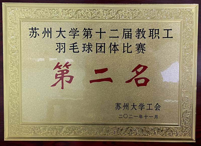 11月6日-13日,材料与化学化工学部教工羽毛球队历经连续2个周末的预赛和决赛,最终获得苏州大学第十二届教职工羽毛球团体比赛第二名,这也是学部在羽毛球团体比赛中获得的历史最好成绩。