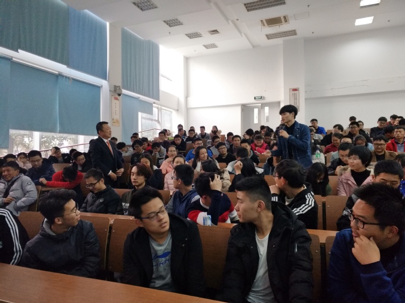 此次讲座从顾总播放的视频“面对巨人”开始,分了七个方面展开:时代赋予的机会和责任、人生的关键阶段、积极的心态去面对“机”与“危”、定向积累的价值、知识的更新、感恩的心态去面对社会、才富与财富。讲座紧紧围绕顾总的人生经历,旁征博引,深入浅出,,让在场的同学真正了解了人生的含义。顾总结合自己公司的发展历程,期望同学们要对自己的未来有明确的方向和深刻的认识,要正确理解纪律在人生发展中所起到的重要作用。讲座中顾总通过独特的语言以及有趣的小活动活跃气氛,并和同学们进行了互动,详细的解答了同学们提出的问题,让同学们受益匪浅。讲座最后,顾总寄语同学们要有“强烈的成功欲望,成功欲望的精力,逮住机会的冒险精神,与众不同的思维方式!”;希望同学们端正学习态度,在学习、工作、生活中践行人生理想,不忘初心,磨砺意志,励志前行。