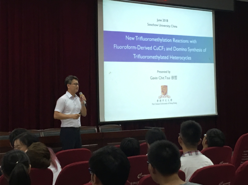 张桥处长和吴铎副主任分别向香港中文大学的师生介绍了苏州大学和材化部的近年发展概况,学校和学部逐年上升的国际排名和稳步提升的教学科研水平得到师生们的一致认可。同时,香港中文大学化学系主任杨英洋教授也对香港中文大学化学系的发展做了相关介绍。两所高校对彼此有了更深入的了解,会议结束后双方互赠纪念品以示欢迎。