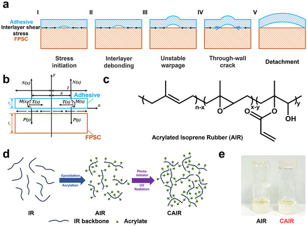 Abstract: The functional layers of flexible perovskite solar cells (FPSCs) are subjected to significant stress during bending, causing structural failure and declining power conversion efficiency. To alleviate stress, a neutral plane (NP) is introduced by positioning the functional layers at the center of the device, with top metal electrode encapsulated by a protective layer. However, adhesive detachment remains a critical issue during multiple bending cycles, and the underlying mechanism remains unclear. In this study, a systematic analysis of the detachment behavior in NP-FPSC reveals that commercial adhesives with high Young's modulus and low adhesion strength struggle to withstand interlayer shear stress during bending, which triggers detachment between adhesives and electrodes. To address this issue, a crosslinkable polymer acrylated isoprene rubber (AIR) is designed with long linear polyisoprene main chain and acrylate side chains, providing high flexibility and reduced chain segment movement. AIR can be crosslinked under UV irradiation to form a stable network with ultralow Young's modulus and high adhesion strength, ensuring a strong bond between the protective layer and FPSCs, constructing stable NP-FPSCs. The resultant NP-FPSCs demonstrate excellent mechanical stability, retaining 92.8% of their initial efficiency after 50 000 bending cycles at a radius of 4 mm, meeting the IEC 62715-6-3 standards.