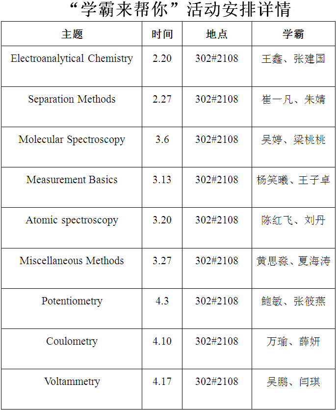 近期,我们班即将推出最新活动“学霸来帮你”(详见图表2),致力将其打造为与“强化星期三”一样的班级常规品牌活动活动中负责人会组织大家进行集中学习,尤其针对难度较大的课程,让同学给同学讲课(Peer Tutoring),梳理近阶段的知识点,学习方法,提高效率,扫除障碍。