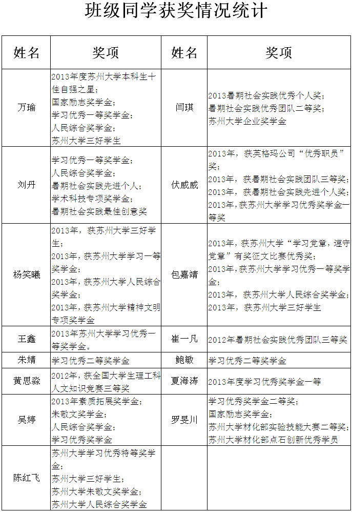 附件:2012~2013学年度苏州大学十佳优良学风班——2012级强化班获奖材料展示: