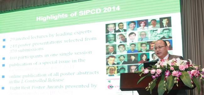 在SIPCD 2014会议上,与会人员共同庆祝了国际著名生物材料和药物释放科学家Jan Feijen教授的70岁寿辰。Jan Feijen教授是药学顶级期刊Journal of Controlled Release的两位创始人之一、荷兰屯特大学生物医学工程研究所(欧洲最大的生物医学工程研究所之一)的创建人、欧洲药物控制释放系列会议(ESCDD)的发起人和前10届会议主席、苏州大学的讲座教授、SIPCD系列会议国际组委会主席。大会执行主席钟志远教授和中国组委会主席陈学思教授分别在开幕式上致辞。