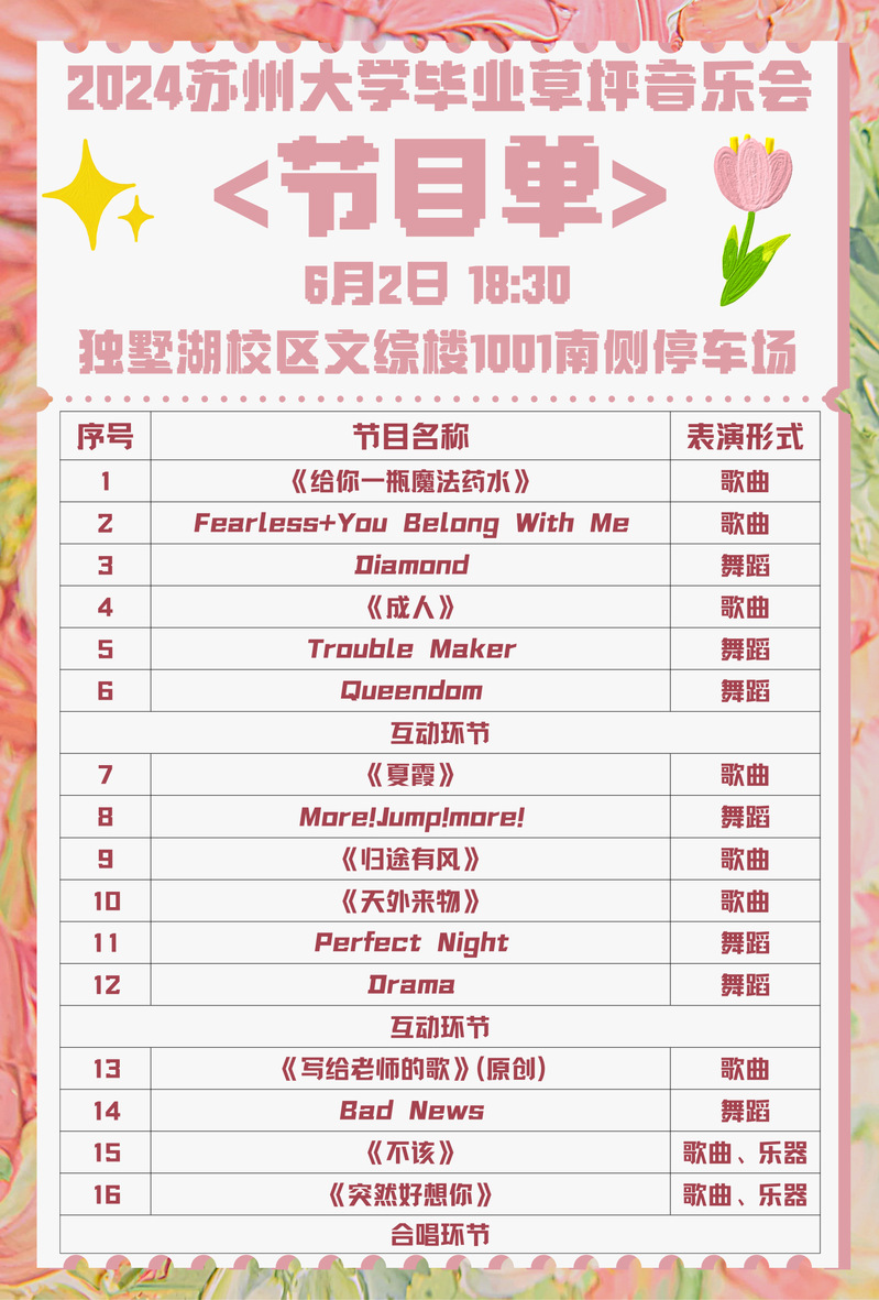 2024年6月2日,在所有人的期待中,独墅湖校区迎来了毕业季活动——草坪音乐会。本次独墅湖校区的音乐会由材料与化学化工学部学生会协助校会承办。