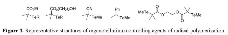 The first example is molecules controlling radical polymerization. Although radical polymerization is the most versatile and widely used technique in producing polymer materials in industry, control of molecular structures has been difficult so far. We have designed and synthesized several organotellurium compounds, which are highly versatile as controlling agents for “living” radical polymerization (Figure 1). Synthesis of structurally well-controlled polymers based on the photo-activation of organotellurium compounds will be mainly discussed.1)