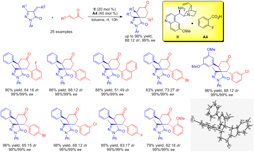 Enantioselective synthesis of unsymmetrical diaryl substituted spirocyclohexanonepyrazolones through a cascade [4+2] double Michael addition
