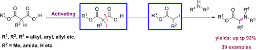A new α-amino acid esters formation reaction has been developed via decarboxylation. The methodology is distinguished by its practical novelty in terms of the readily accessible starting materials, environmentally benign reaction conditions and waste streams, and wide substrate scope.