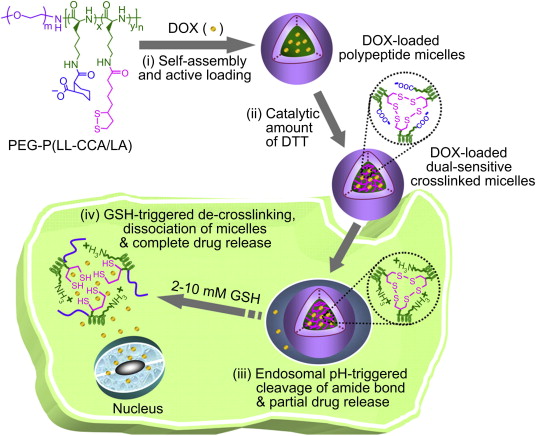 Intracellular release of doxorubicin from core-crosslinked polypeptide micelles triggered by both pH and reduction conditions