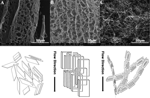We demonstrated here the lyotropic liquid crystalline behavior of an aqueous solution of graphene oxide (GO) sheets. Scanning electron microscope experiments revealed GO sheets self-assembled into fiber-like or sheet-like structures at different concentrations under flow conditions. As a result, the solution viscosity decreased dramatically with increasing shear stress.