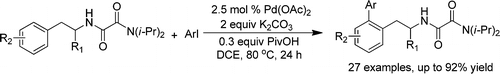 A successful protocol has been developed for δ-arylation of β-arylethamines at the ortho position under mild conditions. The newly developed methodology first presents broad substrate scope, great functional group tolerance, and good to excellent yield in the synthesis of substituted β-arylethylamines. The transformation represents a practical advantage of oxalyl amide in assistance with C–H functionalization at a remote position.