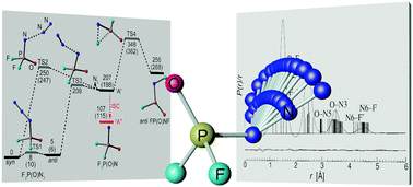 The conformational composition, molecular structure and decomposition of difluorophosphoryl azide F2P(O)N3 in the gas phase were studied using gas electron diffraction (GED), matrix isolation IR spectroscopy, and quantum-chemical calculations, respectively. While computational methods predict only minor differences in the total energy between the two possible conformers (syn and anti), the analysis of electron diffraction data reveals the dominating abundance of the syn conformer in the gas phase at room temperature. Ab initio frequency analyses suggest that a low-frequency large-amplitude motion of the N3 group with respect to the P–N–N–N torsion is to be expected for the syn conformer. The large amplitude motion was included explicitly into the GED structure refinement procedure. It presumably contributes to a thermodynamic stabilization of the syn-conformer with respect to the anti-conformer in the gas phase at ambient temperature. Upon flash vacuum pyrolysis, this syn conformer undergoes a stepwise decomposition via the difluorophosphoryl nitrene, F2P(O)N, which features as the first experimentally observed phosphoryl nitrene that can be thermally produced in the gas phase. To reveal the reaction mechanism, quantum-chemical calculations on the potential energy surface (PES) of F2P(O)N3 were performed. Both B3LYP/6-311+G(3df) and CBS-QB3 calculation results strongly support a stepwise decomposition into the singlet F2P(O)N, which prefers intersystem crossing to the thermally persistent triplet ground state instead of a Curtius rearrangement into FP(O)NF.