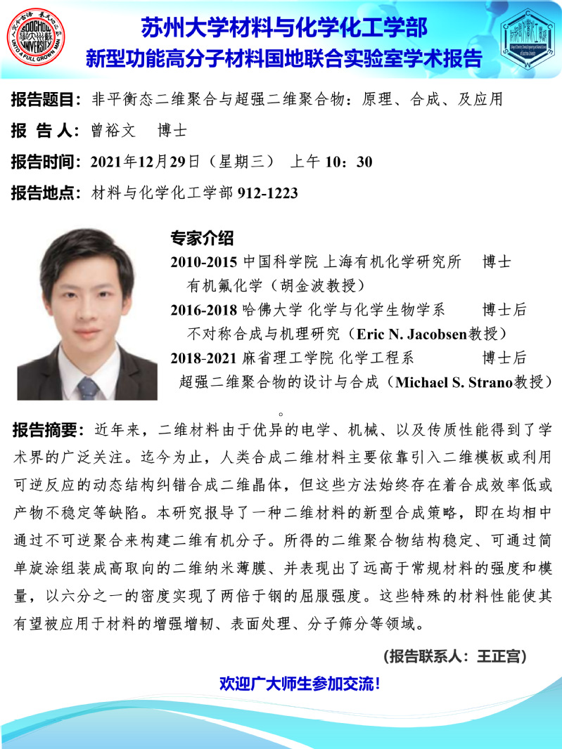非平衡态二维聚合与超强二维聚合物:原理、合成、及应用