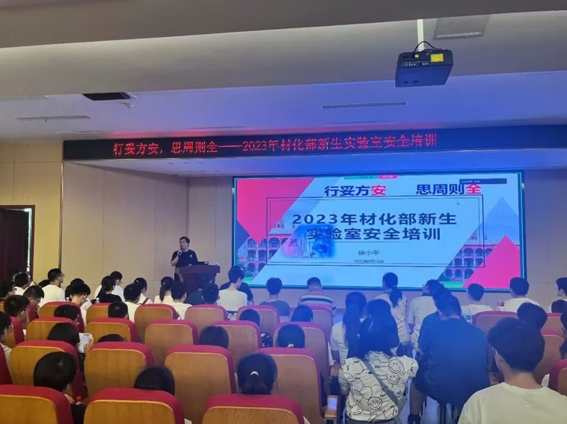 9月12日下午15:30,材化部2023年新生实验室安全培训于907-1101报告厅举行,本次会议由学部副主任徐小平主讲,本科生辅导员高晓梅主持,全体本科生线下参与,全体研究生线上参与。