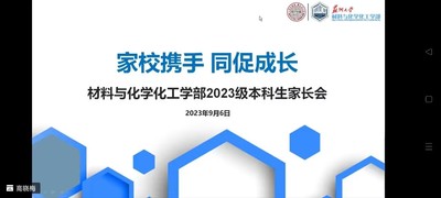 2023年9月6日,材料与化学化工学部于线上召开2023级本科生家长会。本次会议由学部党委副书记、副主任徐美华以及2023级辅导员高晓梅老师主讲,全体2023级本科生家长参加。