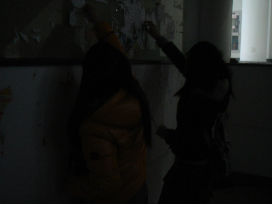 同时一部分同学在一、二食堂用小刀、钢尺细致地铲除废旧广告。