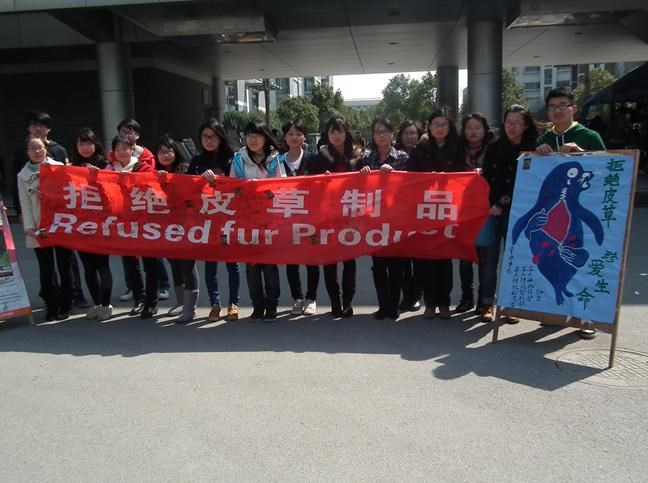 2012年3月14日中午11:30分,在苏州大学独墅湖校区一期教育超市对面,由苏州大学动物保护协会举办的以“保护动物,拒绝血腥皮草”为主题的大型宣传活动正式开始了。