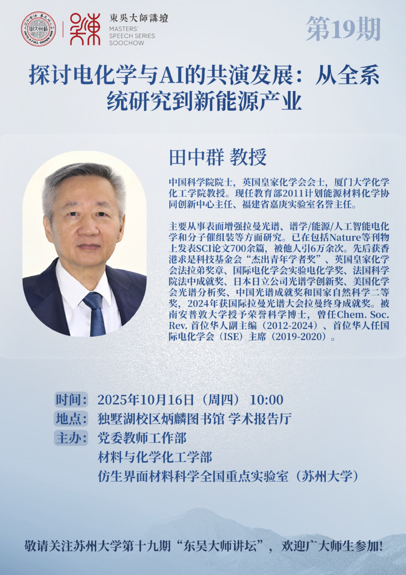 东吴大师讲坛第十九期:探讨电化学与AI的共演发展:从全系统研究到新能源产业