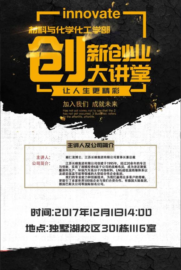 让人生更精彩——材料与化学化工学部创新创业大讲堂 顾仁发博士 江苏长顺集团有限公司董事长兼总裁