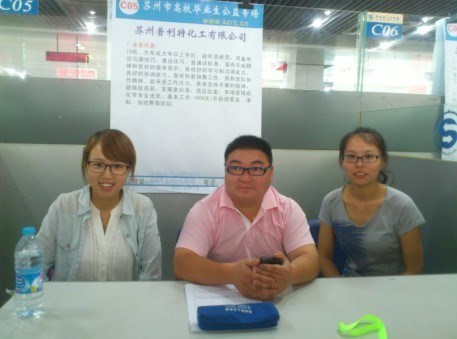 上午十点,一行人来到苏州市人才市场,由于对方要求必须出示毕业证,大家与人才市场负责人几番周折后终于入场,比起上一次的在娄葑人才市场的招聘会,此次招聘会规模更大,更正式并且所需学历也更高。在场的90家企业提供的1880个岗位中大多数都是文科或者技术类岗位,由于没有找到与自己专业对口的岗位,这让大家又一次陷入了被动,最后大家终于找到了一家化工的企业,被熄灭的热情又一次被点燃,大家与对方企业招工人员进行交流后,对方非常热情的接受了我们的采访。当问到“企业看重毕业生哪方面能力”时,对方表示对毕业生除了专业知识的要求,还有的就是对能力的要求了。好的能力比专业知识更重要,主要是交际能力,语言表达能力等,而且这种能力是可以不断提升的。当问到“三年工作经历和研究生学历那个更有吸引力”时,对方回答道是有三年工作经历的本科生,因为毕竟他已经有了三年的工作经历,在处理事等方面都更成熟,得心应手。而刚毕业的研究生没有社会经历,还需要去培养,花费的精力和时间更多。这样的答案有些出乎大家的意料。在近两个小时的采访后,一行人圆满完成任务离开招聘会现场。