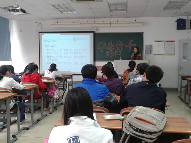 丁姗老师向大家做了简单的自我介绍,进而展开本次培训。丁老师从新闻稿的本质及写作方式来源展开培训。简单平实的几个问题却极富深意,激起了大家对如何写好新闻稿的思考。