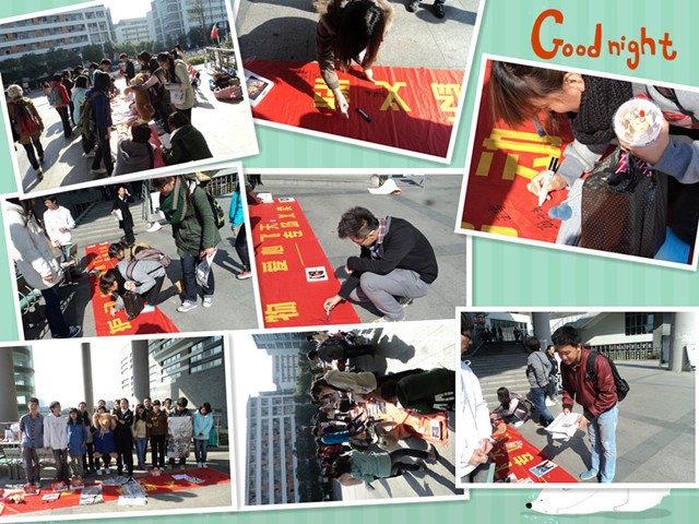 这次活动,我们在第五第六食堂的斜坡上借了个场地,贴起海报搬了桌子,然后把我们要卖的东西摆了出来,小玩意有很多,如玩偶、绒毛玩具、明信片、杂志等,也有衣服。到了11点半,我们就开始了爱心义卖活动。我们的成员都卖力的喊着:“同学你好,这是我们的爱心义卖,捐出的钱都来帮助流浪小动物”也许是到冬天了,中午的太阳也不是很烈,来来往往的同学们都被我们热情的叫喊所注意。有人买东西,也有人捐钱,小玩意没多久就卖了很多。之后我们把我们的横幅拿了出来,希望同学们支持我们的活动留下自己的签名。我们义卖的成员以及过往的同学都来留下了自己的名字支持爱护小动物以及爱心义卖的活动。很多同学都表示非常支持我们的活动。