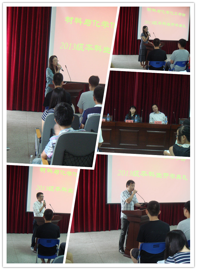 开学典礼于9:10结束。各位老师和学姐的简短发言解开了2013新生们内心的疑惑。面对即将开始的大学,13级的孩子们决心做好规划,既不做宅男宅女,也反对“一心只读圣贤书”的单调生活。做到各方面均衡发展,让大学生活充实美满。2013,新学年的开始,也预示着新的希望。相信材料与化学化工学部2013级的新生,不会辜负家长和老师的期望,乘风破浪勇敢向前。