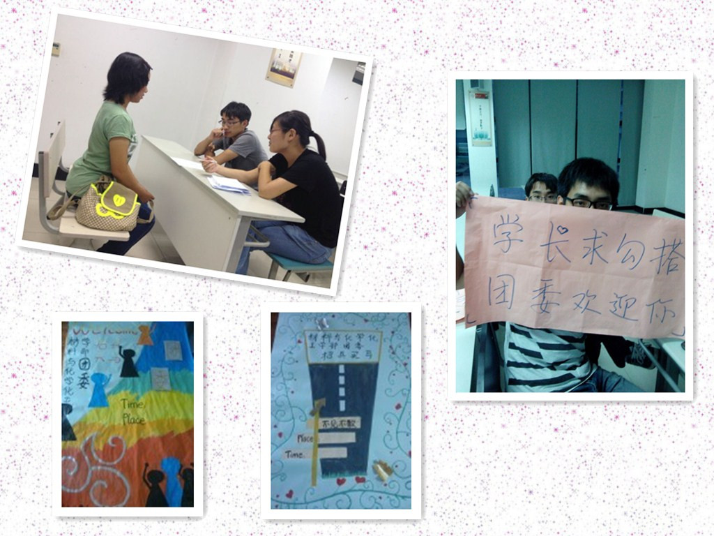 材料与化学化工学部团委一年一度的招新活动在9月5号晚上再一次拉开了帷幕。为了发掘团委的新一代人才,团委的工作人员在606的6202及6206教室展开了面试招新活动。