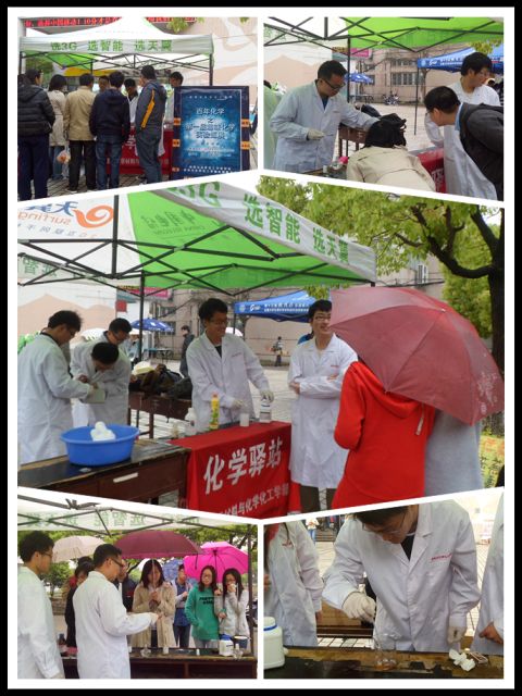 2014年4月19日中午12点,由材料与化学化工学部化学驿站组织承办的百年化学之——第一届趣味化学实验巡展活动在苏州大学东校区教育超市门口举行。本次活动旨在让同学们观察生活中的化学现象,激发同学们对化学的兴趣,在生活中融入更多自己的思考,帮助同学们更好的生活。