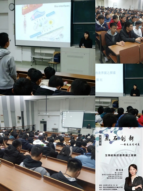 2020年12月1日,苏州大学材料与化学化工学部“点石创新”新生专题讲座第四期于独墅湖校区605幢5301室举办。本次讲座邀请到陈红教授主讲,2020级本科生参加讲座。本次活动旨在帮助同学们培养创新能力,了解生物材料的应用前景,为同学们的科研之路开启新征程。
