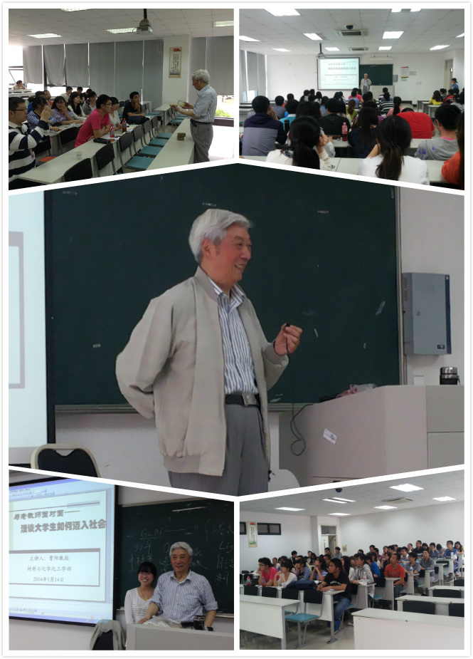 2014年5月21日星期三,在苏州大学独墅湖校区一期606幢6113室,苏州大学材料与化学化工学部学生科技协会承办了“与老教师面对面——漫谈大学生如何迈入社会”的活动,由司马文华老师邀请的退休老教师曹阳教授,给大二大三正在科研立项的同学们进行了精彩的讲座。