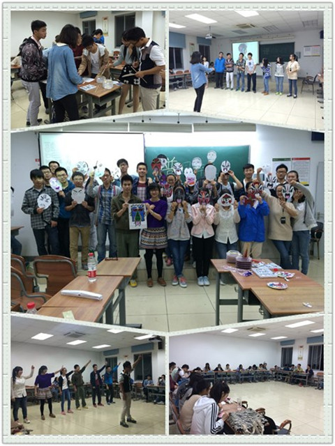 活动开篇便是由梅兰芳主演的京剧名段《霸王别姬》。圆润丰满、刚柔相济的伴奏与唱念做打相结合的表演,使活动渐渐充满浓郁的传统文化气息。在主持人的带领下,欣赏京剧的正式气氛被随之而来的游戏热身环节冲散。同学们化身为“萝卜”与“虎克船长”接受“惩罚”,“蓝脸的多尔礅盗玉马,红脸的关公战长沙,黄脸的典韦,白脸的曹操,黑脸的张飞叫喳喳……”一人一句,欢快激昂;《小苹果》临时模仿秀更是引起全场爆笑;最后,在周仕元同学高歌一曲《新贵妃醉酒》后,活动进入高潮。