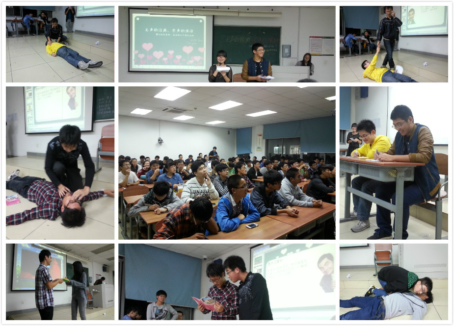 临场表演小品,可谓是本次活动的亮点之处。在竞争机制的作用下,参赛者都使出浑身解数去演绎经典。为了模仿憨豆先生考试时偷窥邻桌情节,单涛同学随机应变,一声“看,Boss!”惹得同学们一阵开怀大笑;夏秋雨同学则让同学刮目相看,一口流利的粤语,顿时星爷喜剧酱爆“上身”;女生也不甘示弱,李慧同学捏尖嗓子,“就算没能砸到小孩子,要是砸到花花草草……”罗家英版的唐僧粉墨登场,应和着旁边破口大骂的“童非非版”孙悟空,获得了观众们的一致好评。