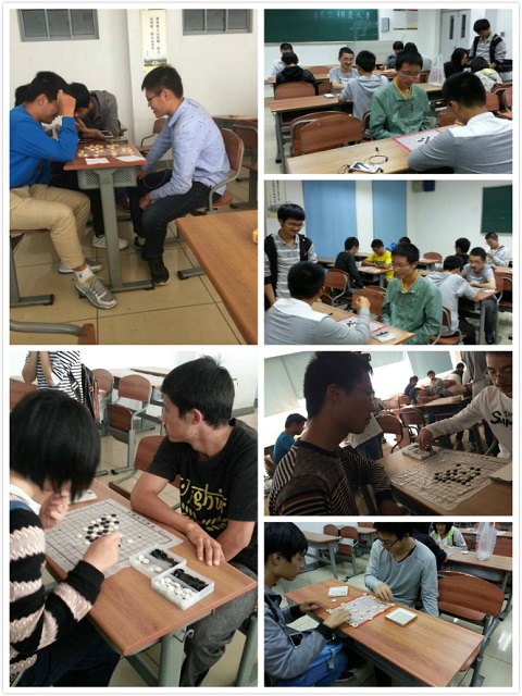比赛在开始前便受到广泛的关注,各学院部同学积极报名踊跃参加。13:00,本次比赛正式开始,各位棋手擦干掌心汗水,握子待发。待裁判一声令下,比赛场地立刻安静下来,落子声此起彼伏,赛场里顿时有“金戈铁马扫千军,羽扇纶巾棋人生”的氛围。时间在滴答滴答流过,14:30,作为第一部分的五子棋比赛宣告结束,但选手们仍然意犹未尽地过着招。紧接着是更为激动人心的象棋比赛。马走日,象走田,楚河汉界边是双方选手在智力与心态上的比拼。15:30,随着裁判统计好参加决赛的人员名单,本次大赛完美结束。胜出的同学笑容满面,失败的也没灰心气馁,大家忘记比赛的输赢,讨论战术得失,享受棋友之间特别的快乐。