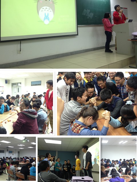 活动开始前,班委们布置好场地等待同学们入场。一切就绪后,活动在曹翼达和周佳敏的主持下正式开始。本次活动分四个环节。在第一个环节中,各小组成员在愉快的互动中相互熟悉,进而选出代表参加第二个环节“你做我猜”小组对抗赛。面对令人挠头的复杂词语,大家不乏机智的反应,周佳敏组快速地猜出了“中国好声音”“阿房宫”等复杂词语,引得阵阵欢呼。智慧的比拼过后便是力量的对决。第三个环节“扳手腕大赛”开始后,参赛同学摩拳擦掌,在大家的围观下进行激情的对决,活动在选手的喊声和观众的助威声中达到了高潮。最后一个环节,由副团支书吴媛媛把准备好的许愿纸发给大家。伴随着温暖的音乐声,众人写下一年后的愿望,放进许愿瓶,让时光保存自己最初的梦想,见证自己的成长。至此,本次团日活动圆满结束。