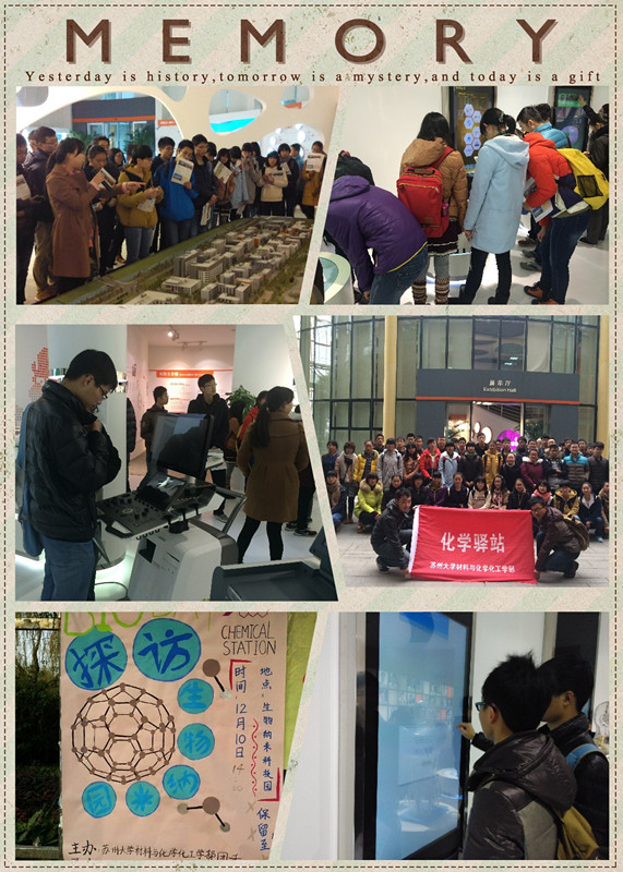 2014年12月10日,材料与化学化工学部化学驿站组织学部同学来到苏州生物纳米科技园进行参观,旨在加强同学们对生物纳米科技园的认识,促进同学们对各自专业今后就业方向的了解。随行的有材料与化学化工学部材料学院博士生导师钟志远教授。