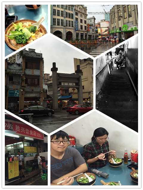 午餐时间,在一番寻找过后,成员们终于发现一家隐藏于小弄堂内的广式煲仔饭店。从外面看,团员们发现房子已经十分破旧,甚至可以称为危楼。店面也几乎没有什么装潢,只是简单的粉刷了一下墙面。但在与店主阿姨的交谈中以及吃饭中的观察,团员们了解到这家小店已经在这里经营几十年,顾客也大都是些街坊邻居,大家相知甚熟,有时不用开口阿姨便已经知道了顾客的要求。或许是巧合,阿姨在闲谈中透露了今天下午这家店是最后一次营业,以后就要搬迁到其他地方去。几十年的街坊情谊即将结束,不禁令人感到一丝忧伤。