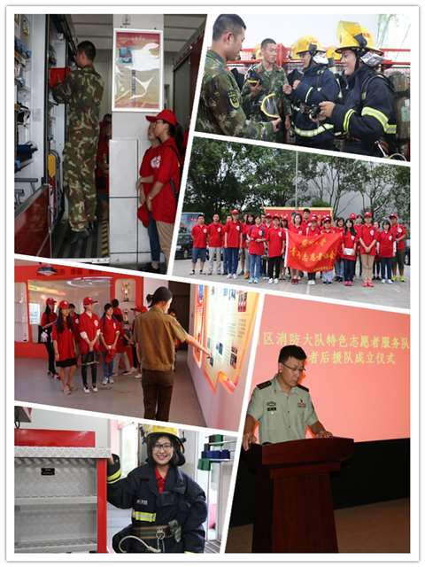 13时30分,志愿者们在独墅湖校区一期东门外集合。领取志愿者服装后,集体乘车前往苏州市园区消防队。15时许,志愿者们到达目的地,进入消防队,活动正式开始。活动伊始,由两位消防队员带领志愿者参观不同用途的消防车,讲解消防车各部分组成及使用方法,走到悬挂消防队服的位置,大家跃跃欲试,纷纷试穿消防员的衣服。紧接着,消防队主任带领志愿者参观消防队员的住处以及消防队的荣誉室。简约明亮的房间,豆腐块状的被子,整齐悬挂的队服,象征荣誉的奖杯……无一不凸显着消防队“听党指挥,能打胜仗,作风优良”的精神。之后,全体志愿者参加园区消防大队志愿者服务队——逆行者后援队成立仪式,消防大队队长主持此次仪式,并向后援队队长授旗。仪式结束后,志愿者们观看“最美消防员”孙茂辉的颁奖仪式视频。孙茂辉的英勇事迹给志愿者们带来强烈震撼,警示大家防火的重要性。之后,相关人员也给志愿者做了简单的消防培训。16时30分,活动圆满落幕,所有参与人员合影留念。