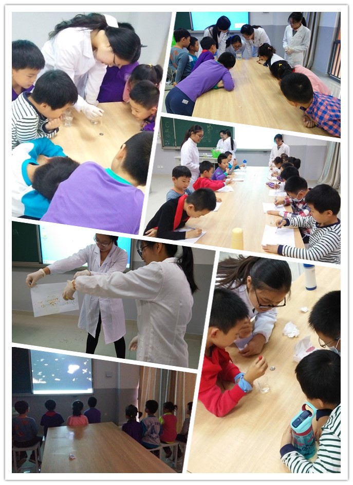 13时40分,志愿者们到达目的地并在劳技教室做好了上课前的准备工作。14名朝气蓬勃的小朋友在老师的带领下有序地进入教室。精彩的实验过程,神奇的实验现象,深深地吸引着小朋友们的目光,也逐渐勾起他们求知的欲望。会自动现身的图画,不会沉到水底的针,能够盛水的硬币。这些看似简单的科普实验,在小朋友的眼里是那么新奇。他们踊跃发言,表达自己的看法,言语间充分展现出他们对科学的热爱以及对知识的渴望。在随后的电影放映环节,小朋友们也被先进的未来科技深深折服。他们纯真的心灵,天马行空的思维也给活动增添许多欢乐。本次科普活动就在这样的欢声笑语中圆满结束。