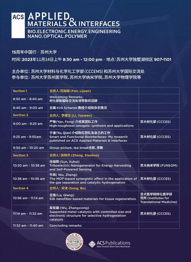 ACS Applied Materials & Interfaces 15周年中国行 ——苏州大学站报告会