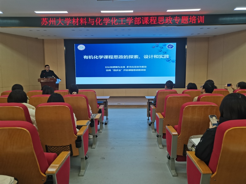 11月15日下午,苏州大学材料与化学化工学部举办了课程思政系列活动。华东理工大学沙风副教授为学部教师作课程思政专题培训。材化部领导、各教研室负责人以及材化部青年教师、师范专业学生等百余人参加了培训。