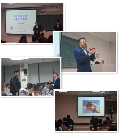 随着同学们陆续到场,讲座正式开始。张正彪首先谈及大学学习和高中学习的不同之处,强调创新在大学学习生涯中的重要性。紧接着讲到同学们常见的几个高分子应用,然后引出它们的材料——神奇的高分子。高分子的广泛用途和众多优点,为同学们掀开神奇的高分子世界的一角。在答疑环节,同学们踊跃提问,问题角度各不相同,张正彪根据同学们的问题给予了专业的解答。最后,张正彪表示如果同学们有学习规划上的困惑,可以随时与他沟通交流。张正彪与同学们进行了充分的沟通之后,本次讲座圆满结束。